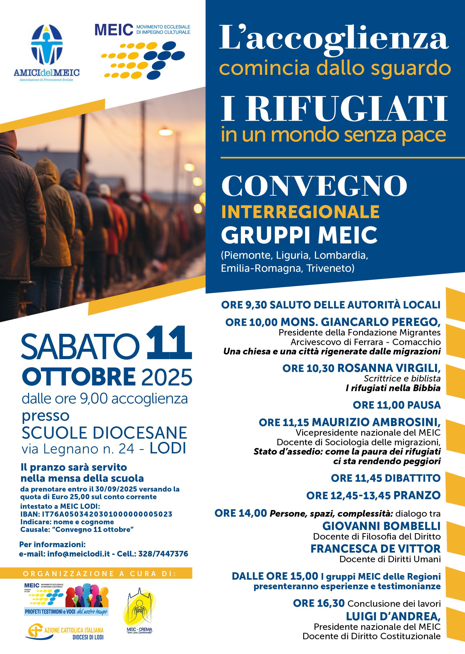 Alleghiamo il manifesto del convegno interregionale del Meic sul tema dell’accoglienza ai rifugiati.
